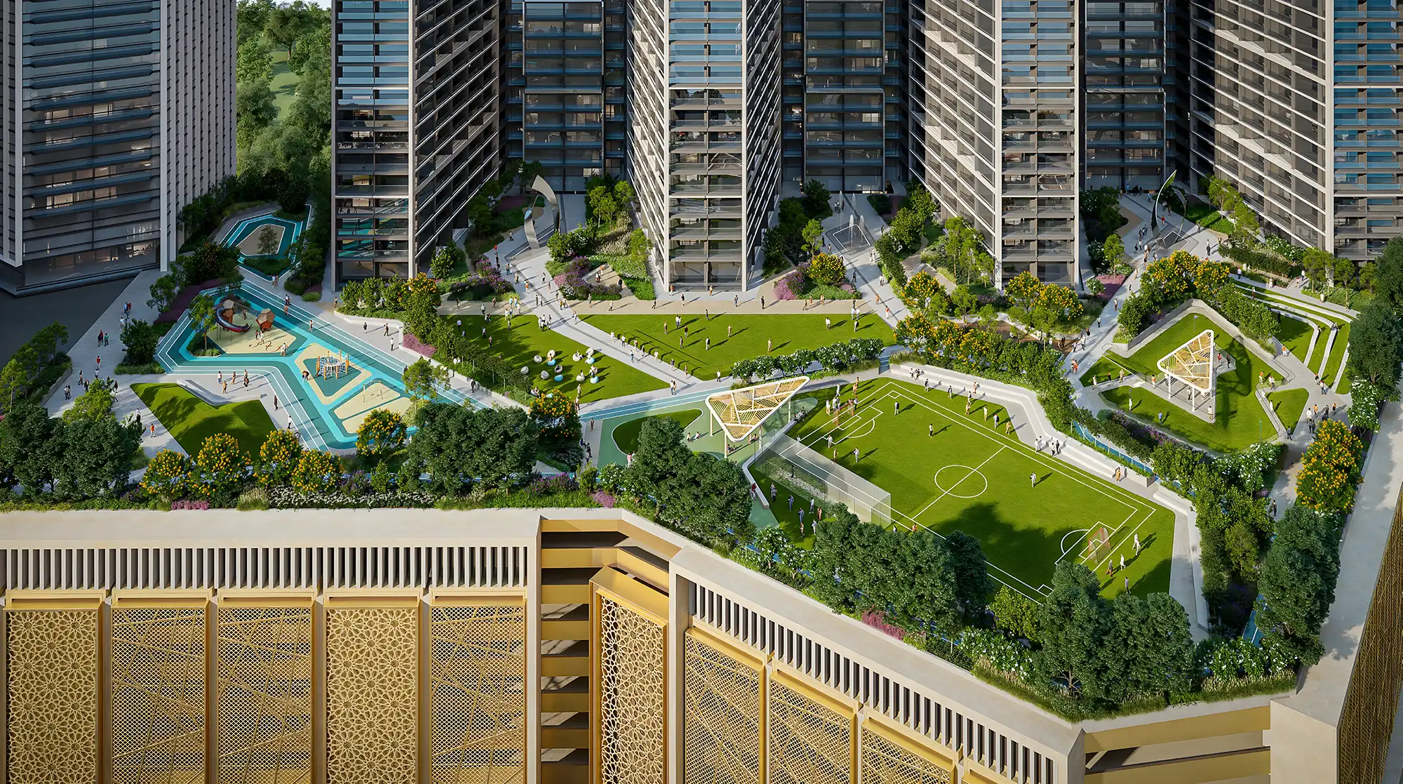 Designed with active urban lifestyles in mind, the architecture of Sobha Central The Mirage features glass façades with advanced sound insulation. Most apartments include balconies or terraces, ensuring a seamless indoor-outdoor connection.