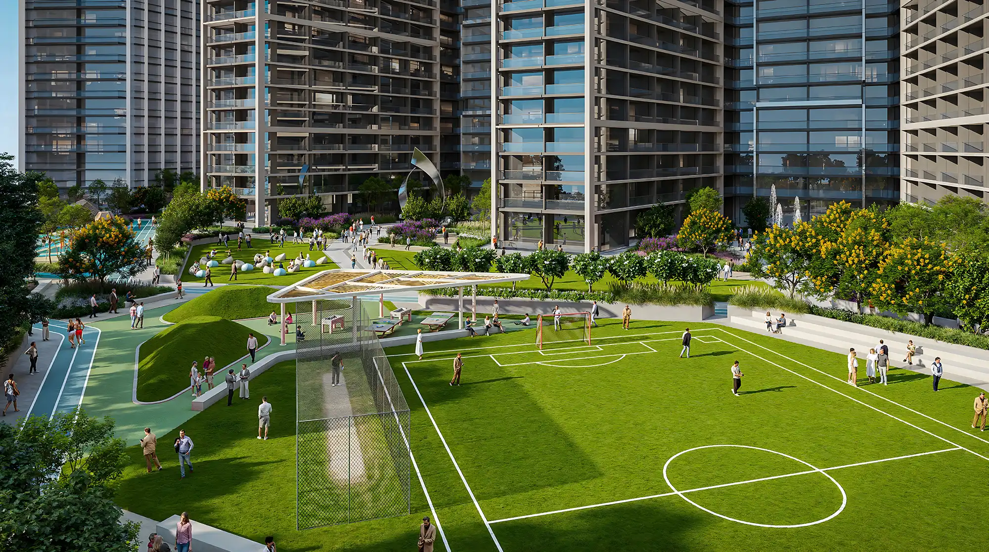 Residents of Sobha Central The Mirage will enjoy a full range of lifestyle facilities catering to wellness, leisure, and productivity. The community includes swimming pools, jacuzzis, outdoor gyms, and a yoga studio.